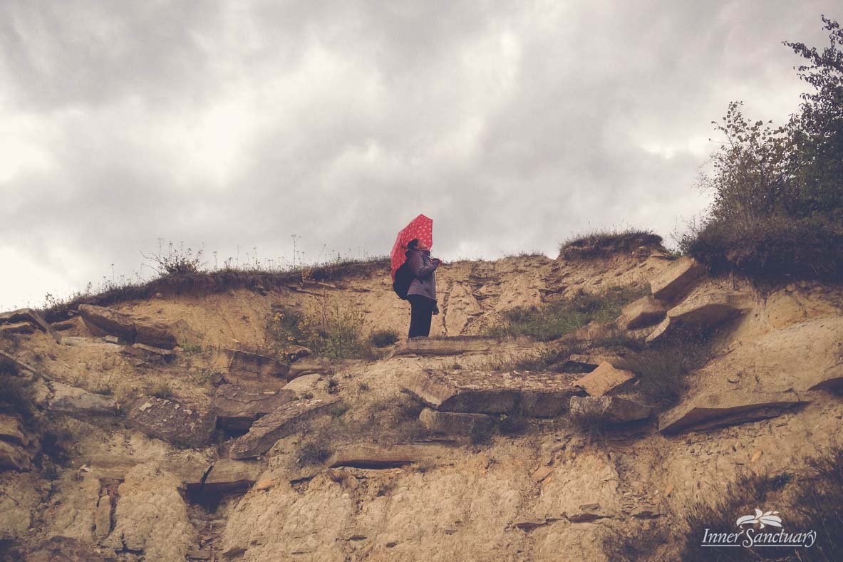 Dežuje. Povsod vlada zatišje, vse je zaprto vase in miruje. Podobno kot moja okolica se počutim tudi sama. Ne želim si, da me kdorkoli kaj vpraša ali mi svetuje, kako do boljšega počutja. Prav tako mi ni do tega, da bi storila karkoli za izboljšanje svoje situacije. Nikomur nočem ničesar obljubiti. Vse, kar si resnično želim, je ostati v tem trenutku žalosti, spuščanja in ga popolnoma občutiti. Zakaj bi bilo s tem kaj narobe?