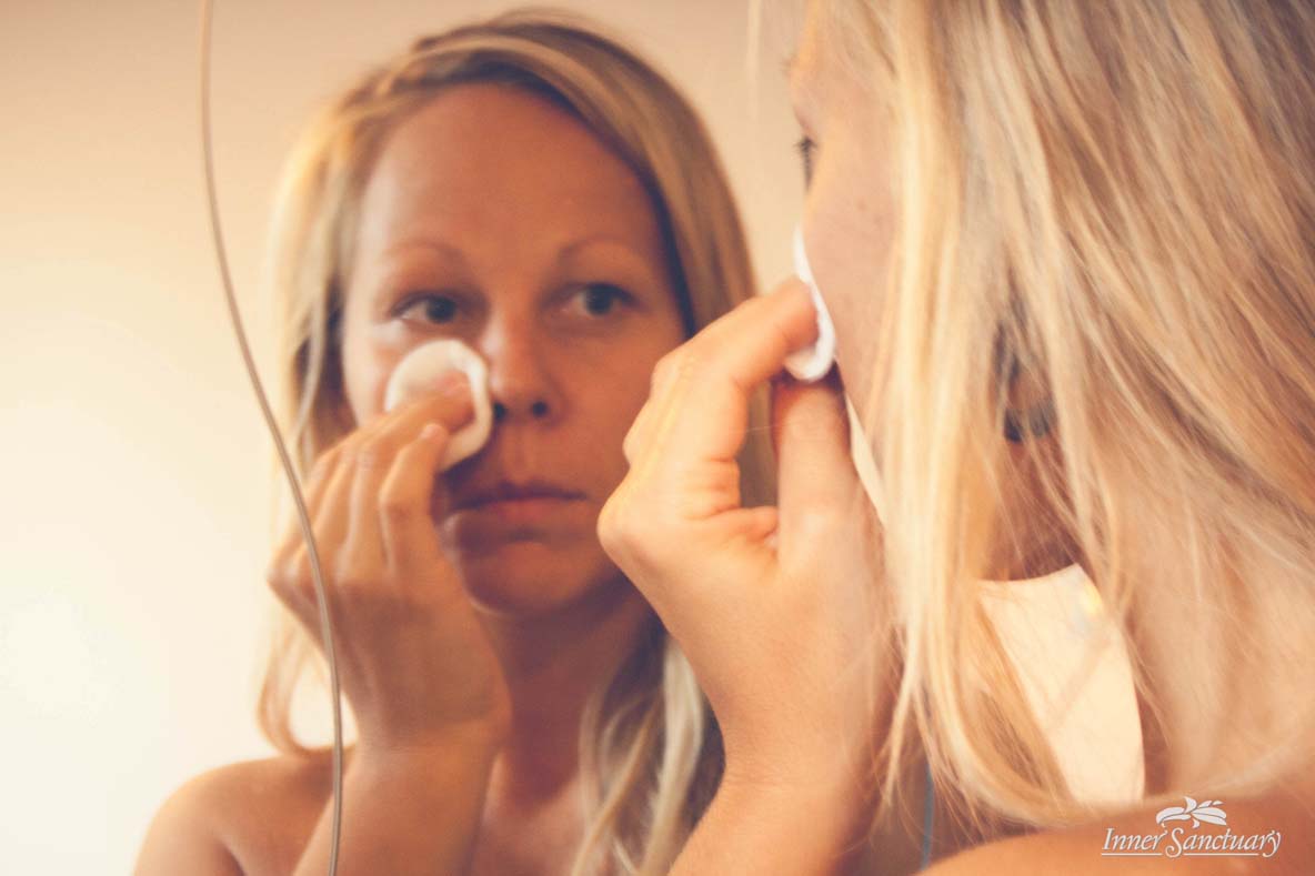 • Cleanse with aloe vera (squeeze out the juice), orange or lemon water (squeeze and peal lemon/orange into the water). Apply with fingertips in a circular motion. Wipe off any remaining liquid and dry. Ensure your skin is damp before applying oil.