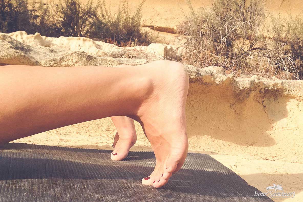 - Make sure your entire body is active, all muscles engaged, your tail-bone tucked under, your navel moving towards your spine and your buttocks engaged. It will feel like you have a big soft balloon under your torso.
