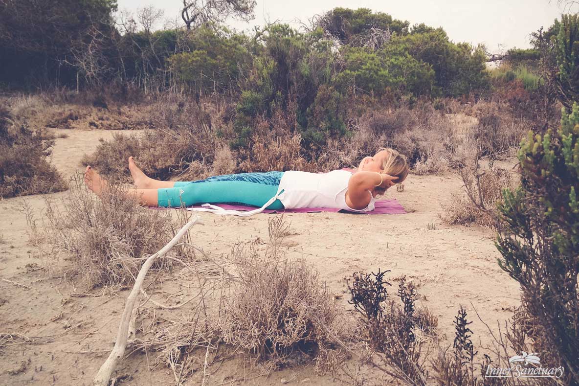 This posture releases all the tensions in the body, both muscular and mental. It is important to feel right when you do the posture. If you feel uncomfortable, use props to facilitate the deep relaxation that you deserve after such hard work.