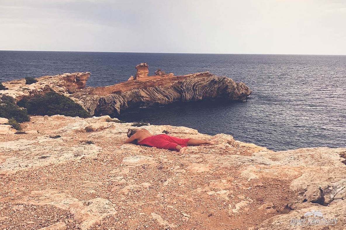 Joga: Namesto aktivnih pozdravov soncu izberite nežno in sproščeno zaporedje poz pozdrava luni, medtem ko širite svojo zavest in se učite prepustiti z gracioznostjo, namesto da je vaša pozornost usmerjena na doseganje rezultatov. Poglobite svojo stabilnost z umirjajočimi pozami Tadasane (gora) ali Vriksasane (drevo), medtem ko se popolnoma prepustite svojemu naravnemu, sproščenemu dihu, da vas vodi. Če želite sprostiti vročino in ohladiti svoje telo ter um, se osredotočite na poze, ki masirajo in sproščajo napetost v predelu trebuha: mačka/krava, Bhujangasana (poze kobre), Supta Badhakonasana (poza boginje), Balasana (poza otroka) in kakršnakoli druga poza predklona, s pomočjo katere približate vaše čelo k tlom ali na blok. Vadite počasi in nežno, dovolite si, da se po vsakem položaju za nekaj trenutkov ustavite v kratki Shavasani (poza trupla) in opazujte pomirjujoče rezultate vaše prakse. Svojo intuicijo poglobite tako, da zaprete oči, jim omogočite počitek od intenzivne sončne svetlobe in vadite poze na drugačen način, z zaprtimi očmi. Občutite svojo podlogo in zavedno poslušajte svoj dih. Poskrbite, da bo vaš prostor dobro prezračen in hladen.