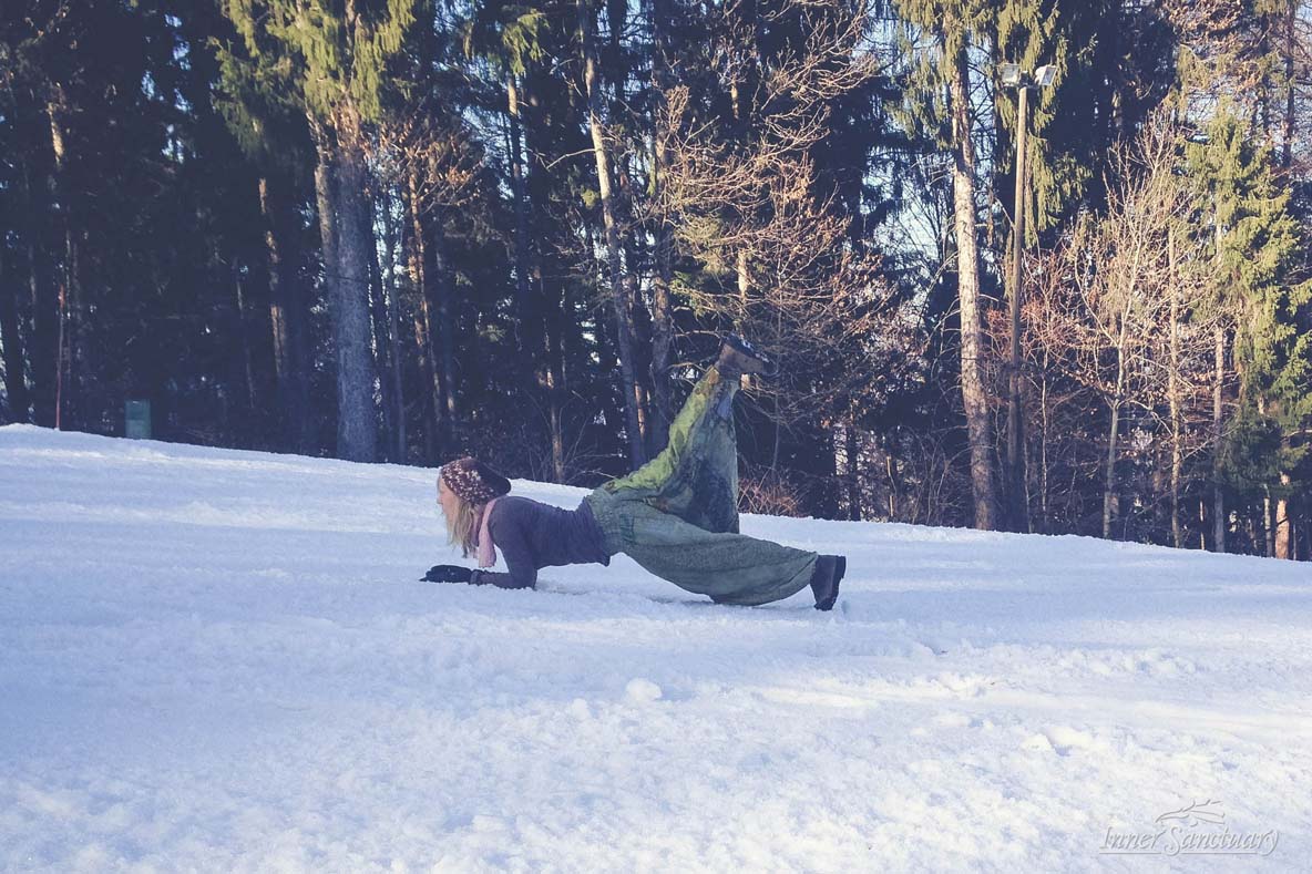 Ne glede na značilnosti zimskega okolja je eden najboljših načinov za dobro počutje in zdravje v zimskem času aktivna vadba in veliko gibanja! Vendar v primeru suhe zime poskrbite, da se boste gibali zavedno, počasneje, nežno in stabilizirajoče (hoja, tai-chi, nežna joga); v primeru težke in oblačne zime z veliko snega ali dežja svojo prakso osredotočite na poživljajočo, hitro vadbo, ki ogreje in je tako intenzivna kot tudi dolgotrajna (pohod, hoja po snegu, smučanje). Ponovno je najboljši čas za vadbo v zgodnjih jutranjih ali večernih urah, ko prevladuje Kapha dosha.
