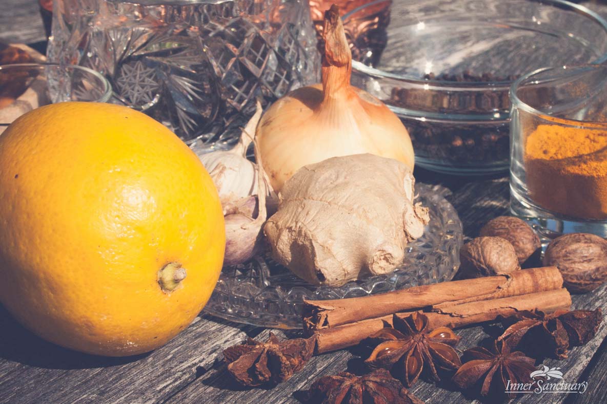 - UPORABLJAJTE ZAČIMBE, ki spodbujajo cirkulacijo, prebavni ogenj in pomagajo pri izločanju sluzi iz telesa: svež ingver, črni poper, koriander, kurkuma, komarček.
