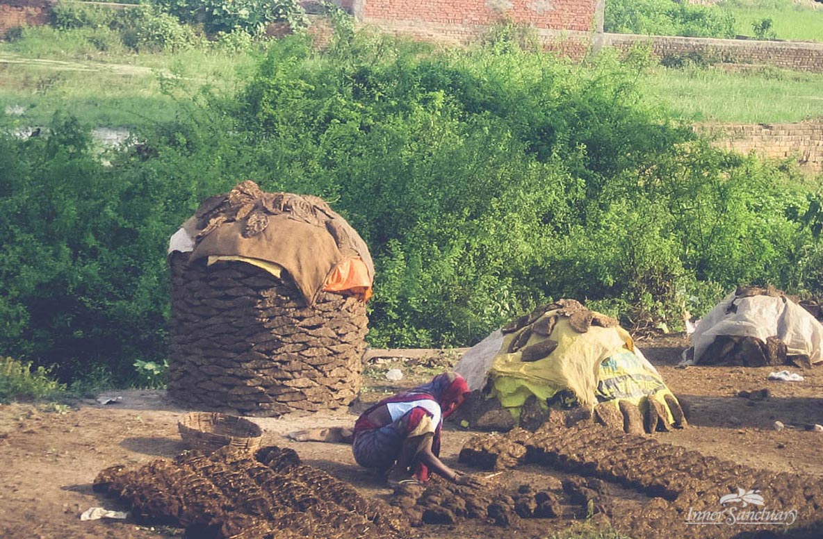 Ko so vsi odšli, sva se z Mataji odpravili obiskat enega izmed vaščanov, ki naju je povabil na čaj. Tik preden smo se poslovili, so nama pokazali svoje krave, simbol božanske matere. Približala sem se kravi, da bi jo pobožala in se v istem trenutku znašla z obema nogama v njenem iztrebku, medtem ko sem se na vse pretege trudila, da ne bi umazala dolgega belega krila. Ravno takrat se nam je pridružila velika skupina vaščanov, ki so me želeli spoznati. Stala sem v kupu kravjih iztrebkov kot izgubljen kuža, ki ne ve, kako se rešiti iz nastale situacije, brez da bi ob vsem prišlo do prevelike drame oziroma brez da bi pokazala svoje noge, kar se v Indiji tretira kot nesprejemljivo. Domačini so medtem že organizirali cev, da bi si z vodo oprala noge. V tistem je zazvonil še moj telefon in Mataji ni preostalo drugega, kot da me pograbi za roko in me posadi v avto z čevlji, polnimi blata. Poskušala sem se opravičiti za zmešnjavo, vendar namesto da bi prisotni v avtu karkoli rekli, smo vsi planili v dolg in glasen krohot.