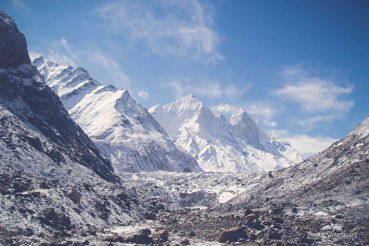 Sedla sem na eno izmed skal, medtem ko se je sneg lesketal v jutranjem soncu in je sonce nežno božalo mojo kožo. Zdelo se mi je, kot da izgubljam zavest. Moje telo je postajalo vedno bolj težko. Začela sem ponavljati sama pri sebi: „Ne, ne zdaj. Ne morem spati.“ Zavedla sem se, da sem se na izviru najbolj svete reke na svetu znašla popolnoma sama! Nekaj, kar v času, ko izvir obišče na stotine turistov, in ko v gore nikogar ne spustijo brez uradnega vodnika, ni bilo mogoče. Čas je obstal in ne spomnim se, kako dolgo sem sedela in zrla v reko. Zdelo se mi je, kot da je trenutek bil večen. Počutila sem se blagoslovljeno, solze so mi curkoma tekle po obrazu, medtem ko sem se zahvaljevala in vračala vse dobljene blagoslove nazaj naravi. Napolnila sem steklenico z izvirsko vodo, ki je bila polna peska zaradi snega in dežja, vendar me to ni motilo. To je bila najbolj okusna in čudežna voda, kar sem jih kadarkoli pila. Sveta voda, ki lahko ozdravi vse. Zavedela sem se, da nikoli ne bo mogoče ponoviti trenutka, v katerem sem se znašla. To je bil trenutek, ki ga ni bilo mogoče dokumentirati s fotografijo ali besedo. Uporabljene besede predstavljajo le zgolj opis tega, kar se je dejansko zgodilo na 4000 metrih visoko v Himalaji.
